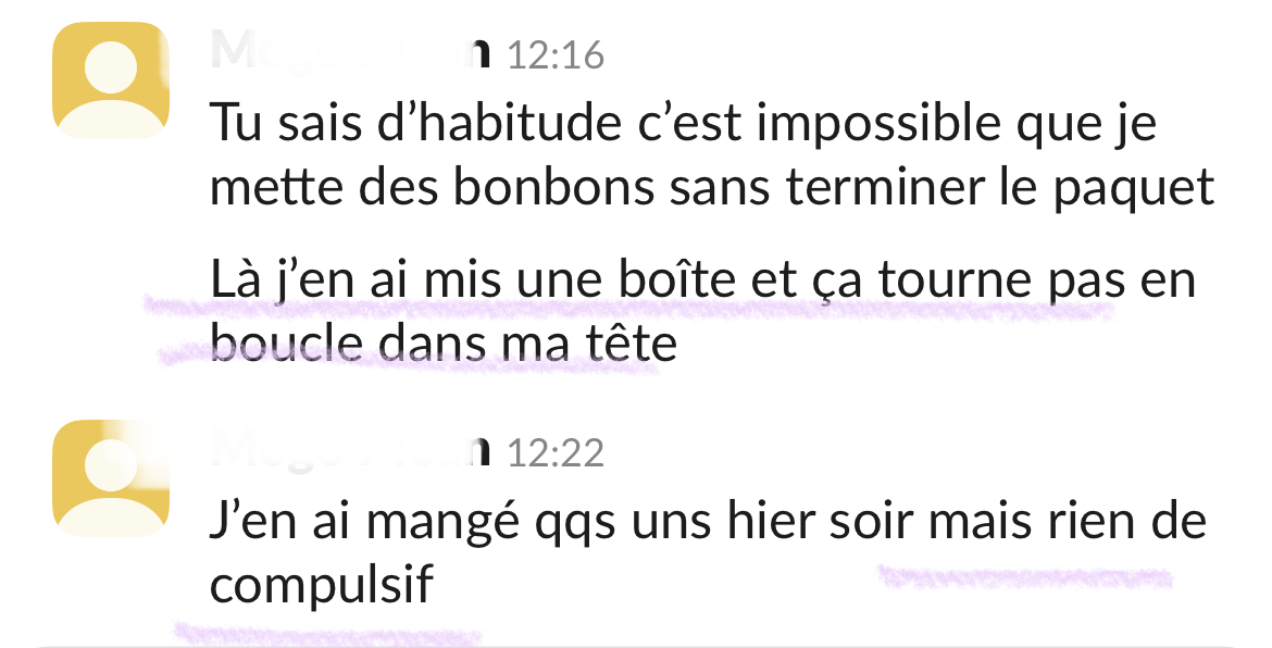 Tu as beaucoup de difficultés à stopper tes repas (notamment le soir) et tu sens que tu débordes quasiment systématiquement.